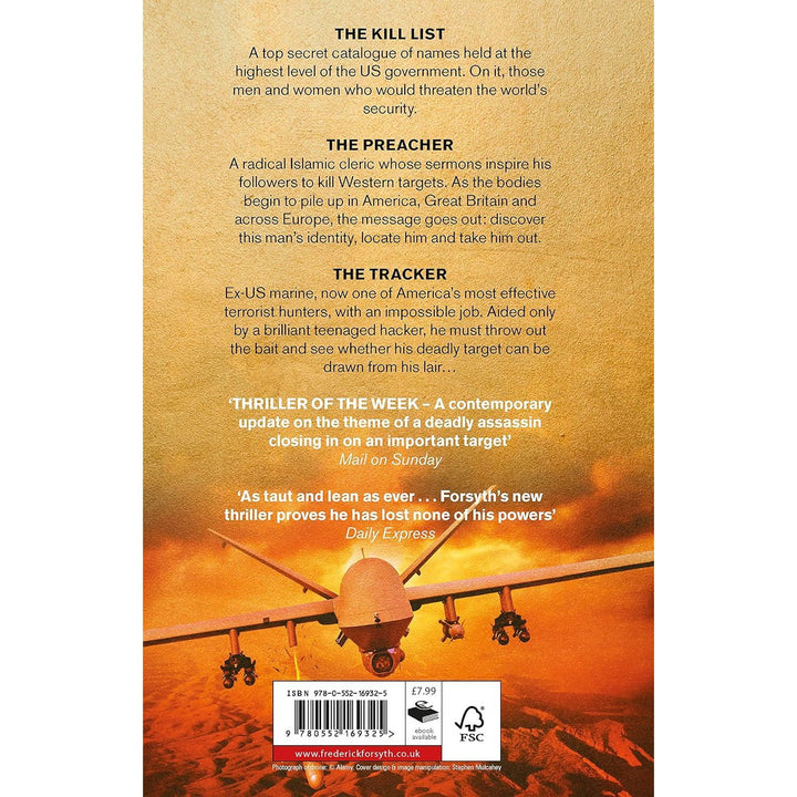 The international bestselling political thriller from the author of The Day of the Jackal, now a Sky TV series with Eddie Redmayne 'Packs a punch... impossible to put down' Daily Mail 'The plot is as taut and lean as ever' Daily Express 'The master of the political thriller strikes again' Kirkus ______________________ THE KILL LIST The names of those men and women who would threaten the world's security - held above top secret at the highest level of the US government. THE PREACHER At the top of it, a radical Islamic cleric whose sermons inspire his followers to kill Western targets. As the bodies begin to pile up in America, Great Britain and across Europe, the message goes out: discover this man's identity, locate him and take him out. THE TRACKER Ex-US marine, now one of America's most effective terrorist hunters, with an impossible job. Aided only by a brilliant teenaged hacker, he must throw out the bait and see whether his deadly target can be drawn from his lair... Readers love The Kill List: 'Totally unputdownable! ***** Reader review 'Frederick Forsyth books always hit the spot. One of the greats.' ***** Reader review '[An] action-packed page-turner' ***** Reader review 'Another great read from the master storyteller' ***** Reader review 'This book is up there with his best, meticulously researched, well- plotted...and the story doesn't lose impetus all the way through.' ***** Reader review