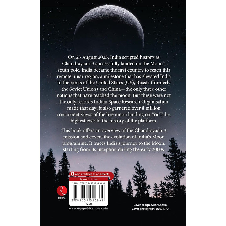 On 23 August 2023, India scripted history as Chandrayaan-3 successfully landed on the Moon’s South Pole. India became the first and only country to reach this remote lunar region, a milestone that has elevated India to the ranks of the United States (US), Russia and China—the only three other nations that have reached the moon. But these were not the only records Indian Space Research Organisation (ISRO) made that day; it also garnered over 8 million concurrent views of the live moon landing on YouTube, highest ever in the history of the platform. This book offers an overview of the Chandrayaan-3 mission and covers the evolution of India’s Moon programme. It traces India’s journey to the Moon, starting from its inception during the early 2000s.