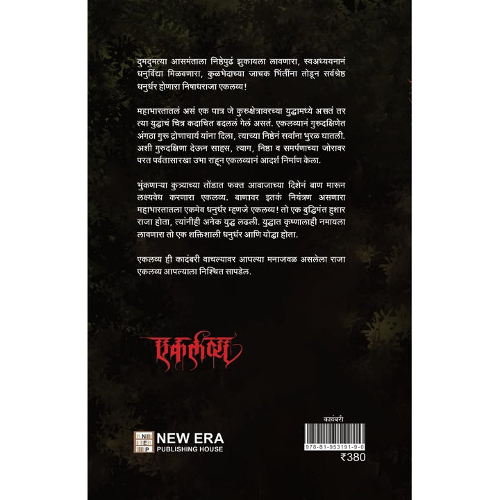 दुमदुमत्या आसमंताला निठेपुढं झुकायला लावणारा, स्वअध्ययनान धनुर्विद्या मिळवणारा, कुळभेदाच्या जाचक भिंतींना तोडून सर्वश्रेष्ठ धनुर्धर होणारा निषाधराजा एकलव्य ! महाभारतातलं असं एक पात्र जे कुरुक्षेत्रावरच्या युद्धामध्ये असतं तर त्या युद्धाचं चित्र कदाचित बदललं गेलं असतं. एकलव्यानं गुरुदक्षिणेत अंगठा गुरू द्रोणाचार्य यांना दिला, त्याच्या निष्ठेनं सर्वांना भुरळ घातली. अशी गुरुदक्षिणा देऊन साहस, त्याग, निष्ठा व समर्पणाच्या जोरावर परत पर्वतासारखा उभा राहून एकलव्यानं आदर्श निर्माण केला. भुंकणाऱ्या कुत्र्याच्या तोंडात फक्त आवाजाच्या दिशेनं बाण मारून लक्ष्यवेध करणारा एकलव्य बाणावर इतकं नियंत्रण असणारा महाभारतातला एकमेव धनुर्धर म्हणजे एकलव्य! तो एक बुद्धिमंत हुशार राजा होता, त्यांनीही अनेक युद्ध लढली. युद्धात कृष्णालाही नमायला लावणारा तो एक शक्तिशाली धनुर्धर आणि योद्धा होता. एकलव्य ही कादंबरी वाचल्यावर आपल्या मनाजवळ असलेला राजा. एकलव्य आपल्याला निश्चित सापडेल.