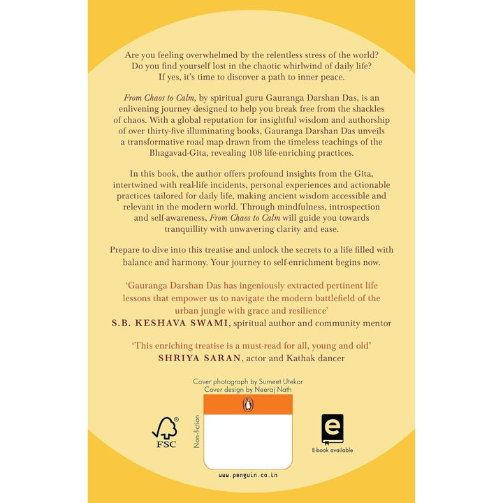 From Chaos to Calm by spiritual guru Gauranga Darshan Das is an enlivening journey designed to help you break free from the shackles of chaos. With a global reputation for insightful wisdom and authorship of over thirty-five illuminating books, Gauranga Darshan Das unveils a transformative road map drawn from the timeless teachings of the Bhagavad-Gita, revealing 108 life-enriching practices.