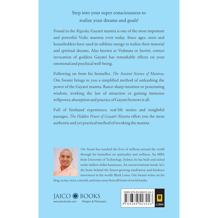 Step into your super consciousness to realize your dreams and goals! Found in the Rigveda, Gayatri mantra is one of the most important and powerful Vedic mantras even today. Since ages, seers and householder have used its sublime energy to realize their material and spiritual dreams. Also known as vedmata or Savitri, correct invocation of goddess Gayatri has remarkable effects on your emotional and psychic well-being. Following on from his bestseller, The Ancient Science of Mantras, Om Swami brings to you a simplified method of unleashing the power of the Gayatri mantra. Razor-sharp intuition or penetrating wisdom, working the law of attraction or gaining immense willpower, absorption and practice of Gayatri bestow it all. Full of first-hand experiences, real-life stories and insightful passages, The Hidden Power of Gayatri Mantra offers you the most authentic and yet practical method of invoking the mantra.