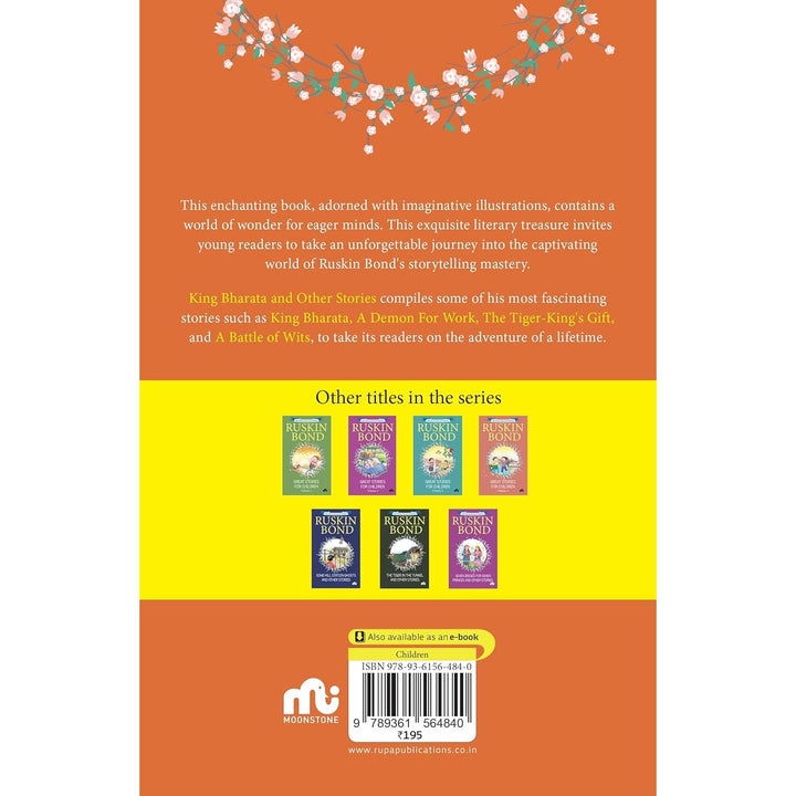 This enchanting book, adorned with imaginative illustrations, contains a world of wonder for eager minds. This exquisite literary treasure invites young readers to take an unforgettable journey into the captivating world of Ruskin Bond's storytelling mastery. King Bharata and Other Stories compiles some of his most fascinating stories such as King Bharata, A Demon For Work, The Tiger-King's Gift, and A Battle of Wits, to take its readers on the adventure of a lifetime.