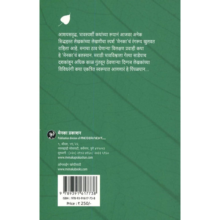 आशयसमृद्ध, भावस्पर्शी कथांच्या रूपानं आजवर अनेक सिद्धहस्त लेखकांच्या लेखणीचा स्पर्श 'मेनका'चं रंगरूप खुलवत राहिला आहे. मनाचा ठाव घेणाऱ्या विलक्षण प्रवाही कथा हे 'मेनका'चं बलस्थान. मराठी भावविश्वाला गेल्या साडेपाच दशकांहून अधिक काळ गुंतवून ठेवणाऱ्या दिग्गज लेखकांच्या विविधरंगी कथा एकत्रित स्वरूपात आणणारं हे पिंपळपान....