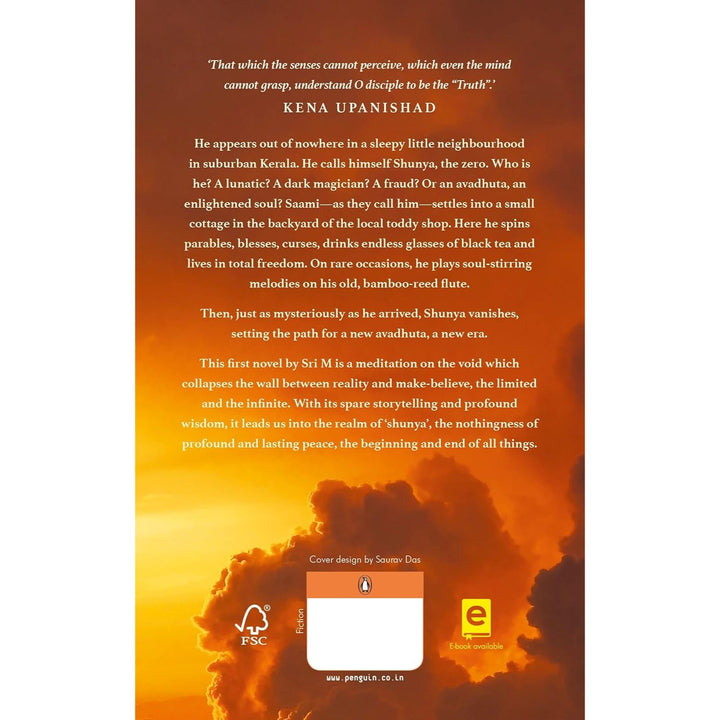 He appears out of nowhere in a sleepy little neighbourhood in suburban Kerala. He calls himself Shunya, the zero. Who is he? A lunatic? A dark magician? A fraud? Or an avadhuta, an enlightened soul? Saami-as they call him-settles into a small cottage in the backyard of the local toddy shop. Here he spins parables, blesses, curses, drinks endless glasses of black tea and lives in total freedom. On rare occasions, he plays soul-stirring melodies on his old, bamboo-reed flute. Then, just as mysteriously as he arrived, Shunya vanishes, setting the path for a new avadhuta, a new era. This first novel by Sri M is a meditation on the void which collapses the wall between reality and make-believe, the limited and the infinite. With its spare storytelling and profound wisdom, it leads us into the realm of 'shunya', the nothingness of profound and lasting peace, the beginning and end of all things.