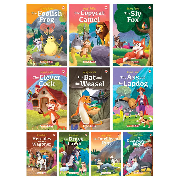 Written by Aesop, a Greek storyteller, these short narratives teach kids the difference between good and evil. Reading these short stories will help kids develop vocabulary and enhance their communication skills. The large, colourful illustrations and simple narratives in the books will teach kids valuable life lessons. Also, the anthropomorphic characters will keep kids entertained and amused. Some of the stories in this set are “The Ass and the Lapdog,” “Hercules and the Wagoner,” “The Bat and the Weasels,” “The Sly Fox,” “The Foolish Frog” and more.