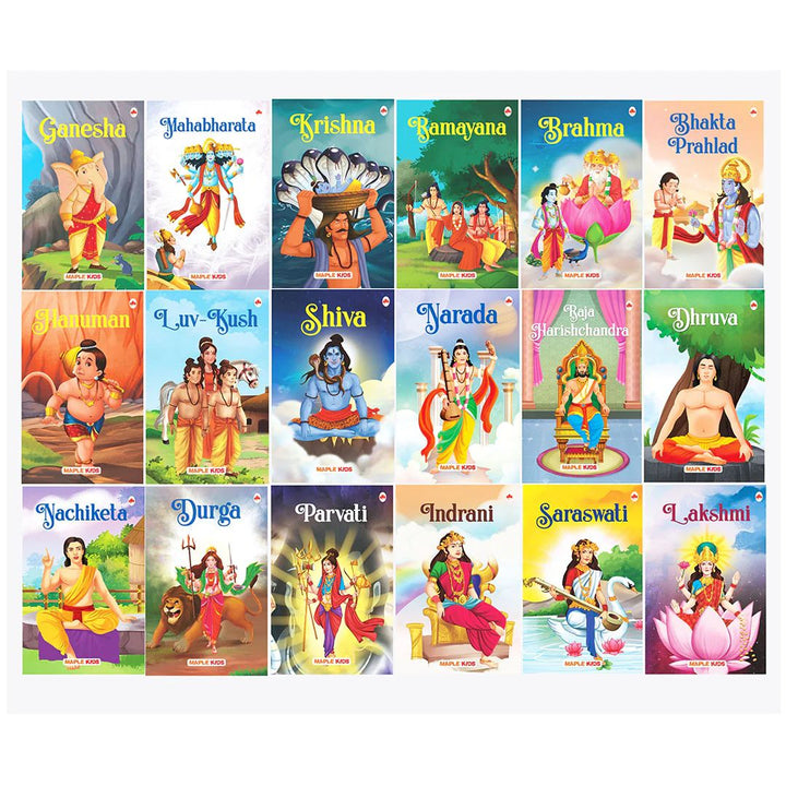 Story Books for Kids (Set of 18 Books) (Illustrated) - Mythology Books for Children - Krishna, Ganesha, Ramayana, Mahabharata, Hanuman, Brahma, Bhakta Prahlad, Luv-Kush, Shiva, Parvati, Lakshmi, Saraswati, Indrani, Durga, Nachiketa, Dhruva, Narada, Harish Chandra