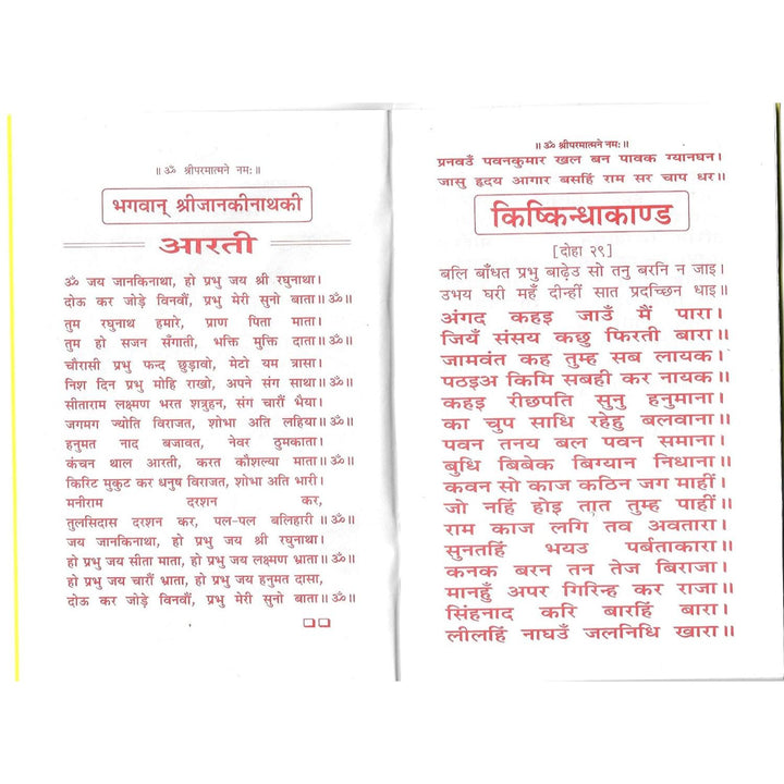 श्रीरामचरितमानस—गोस्वामी श्रीतुलसीदासजी महाराजके द्वारा प्रणीत श्रीरामचरितमानस हिन्दी साहित्यकी सर्वोत्कृष्ट रचना है। आदर्श राजधर्म, आदर्श गृहस्थ-जीवन, आदर्श पारिवारिक जीवन आदि मानव-धर्मके सर्वोत्कृष्ट आदर्शोंका यह अनुपम आगार है। सर्वोच्च भक्ति, ज्ञान, त्याग, वैराग्य तथा भगवान्की आदर्श मानव-लीला तथा गुण, प्रभावको व्यक्त करनेवाला ऐसा ग्रन्थरत्न संसारकी किसी भाषामें मिलना असम्भव है। आशीर्वादात्मक ग्रन्थ होनेके कारण सभी लोग इसका मन्त्रवत् आदर करते हैं। इसका श्रद्धापूर्वक पाठ करनेसे एवं इसके उपदेशोंके अनुरूप आचरण करनेसे मानवमात्रके कल्याणके साथ भगवत्प्रेमकी सहज ही प्राप्ति सम्भव है। इस दिव्य ग्रन्थरत्नकी अधिकाधिक प्रचार-प्रसारकी दृष्टि से ही गीताप्रेससे इसके बृहदाकार, ग्रन्थाकार, मझला आकार, गुटका आकार और अलग-अलग काण्डके रूपमें विभिन्न भाषाओंमें सटीक एवं मूल अनेक संस्करण प्रकाशित किये गये हैं। श्रीरामचरितमानसका सटीक संस्करण अबतक प्रकाशित सैकड़ों टीकाओंमें पाठ-भेदोंको दृष्टि में रखकर सर्वाधिक प्रमाणित टीकाके रूपमें निकाला गया। यहाँसे प्रकाशित श्रीरामचरितमानसका मूलपाठ भी यथाशक्ति सर्वाधिक शुद्ध तथा क्षेपकरहित है। श्रीरामचरितमानसके सभी संस्करणोंमें पाठ-विधिके साथ नवाह्न और मासपारायणके विश्रामस्थान, गोस्वामीजीकी संक्षिप्त जीवनी, श्रीरामशलाका प्रश्नावली तथा अन्तमें रामायणजीकी आरती दी गयी है। गीताप्रेससे प्रकाशित श्रीरामचरितमानसके विभिन्न संस्करणोंकी प्रत्येक घरमें उपस्थिति ही इसकी लोकप्रियता तथा प्रामाणिकताका सुन्दर परिचय है।