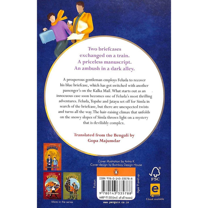 Two briefcases exchanged on a train. A priceless manuscript. An ambush in a dark alley… A prosperous gentleman employs Feluda to recover his blue briefcase, which has got switched with another passenger's on the Kalka Mail. What starts out as an innocuous case soon becomes one of Feluda's most thrilling adventures. Feluda, Topshe and Jatayu set off for Simla in search of the briefcase, but there are unexpected twists and turns all the way. The hair-raising climax that unfolds on the snowy slopes of Simla throws light on a mystery that is devilishly complex.
