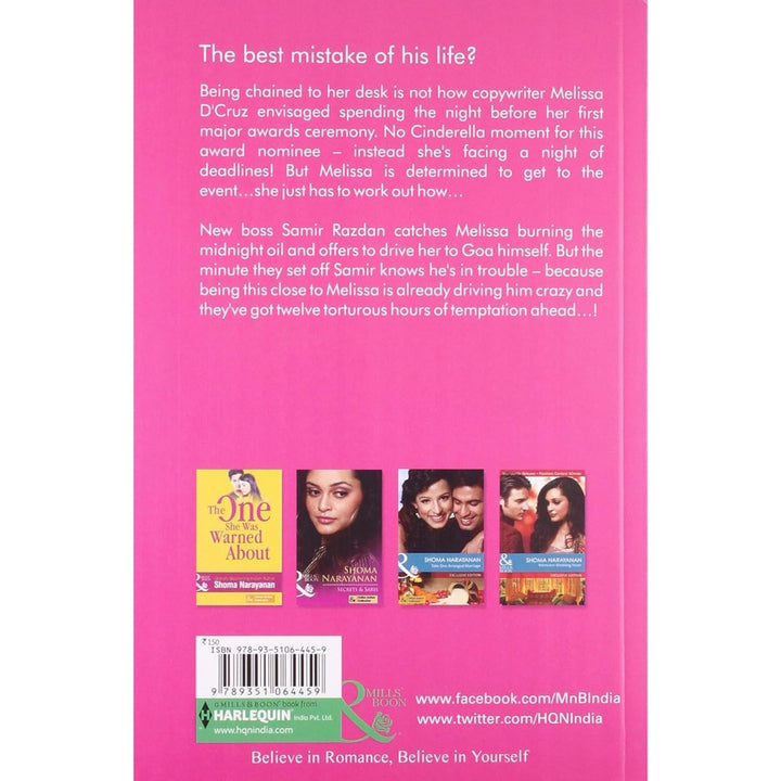 The best mistake of his life? Being chained to her desk is not how copywriter Melissa D'Cruz envisaged spending the night before her first major awards ceremony. No Cinderella moment for this award nominee - instead she's facing a night of deadlines, but Melissa is determined to get to the event. She just has to work out how. New boss Samir Razdan catches Melissa burning the midnight oil and offers to drive her to Goa himself, but the minute they set off, Samir knows he's in trouble - because being this close to Melissa is already driving him crazy and they've got twelve torturous hours of temptation ahead.
